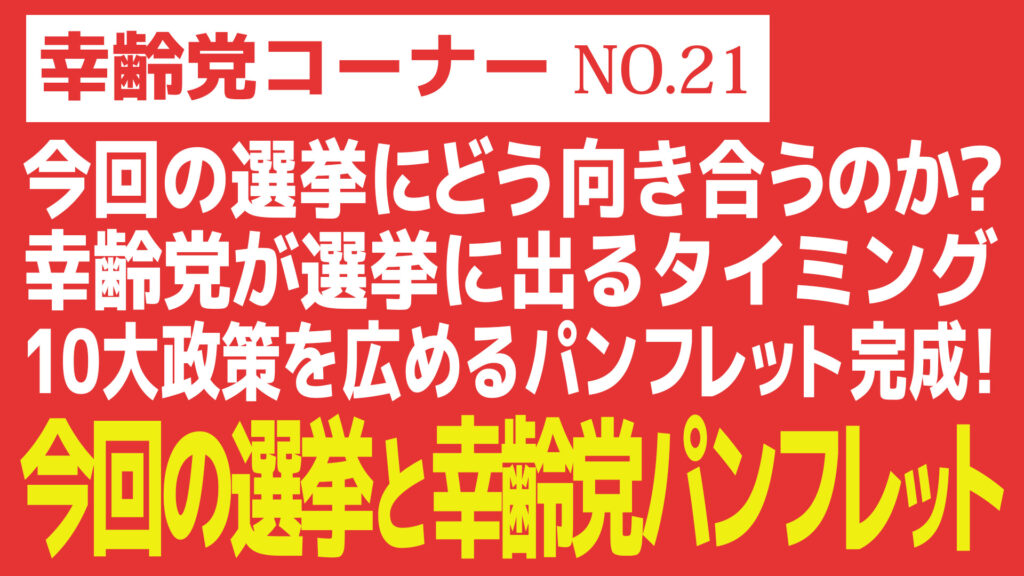 高市首相の解散表明を受け、 「幸齢党は選挙にどう向き合うのか?」をお話しします。